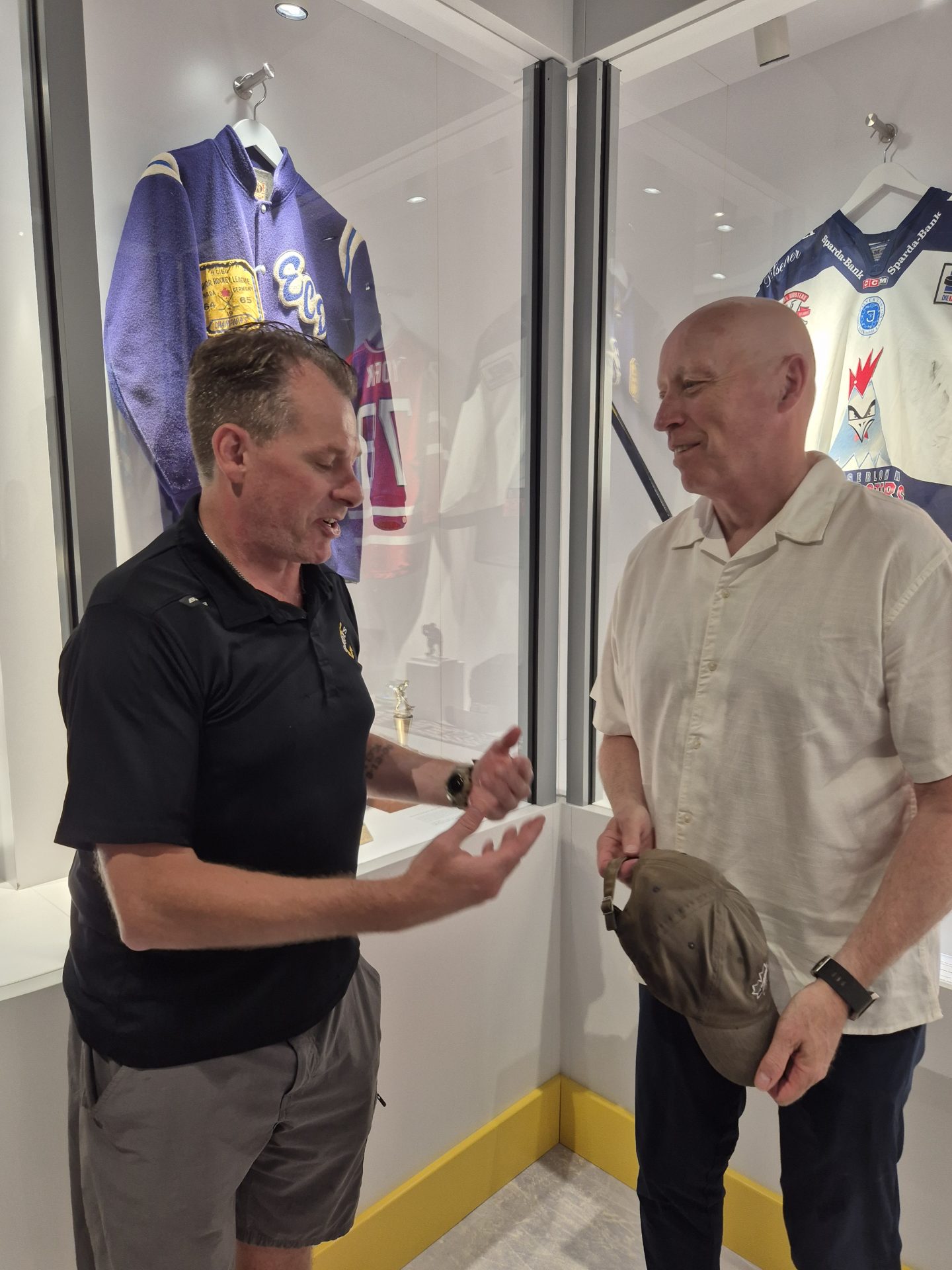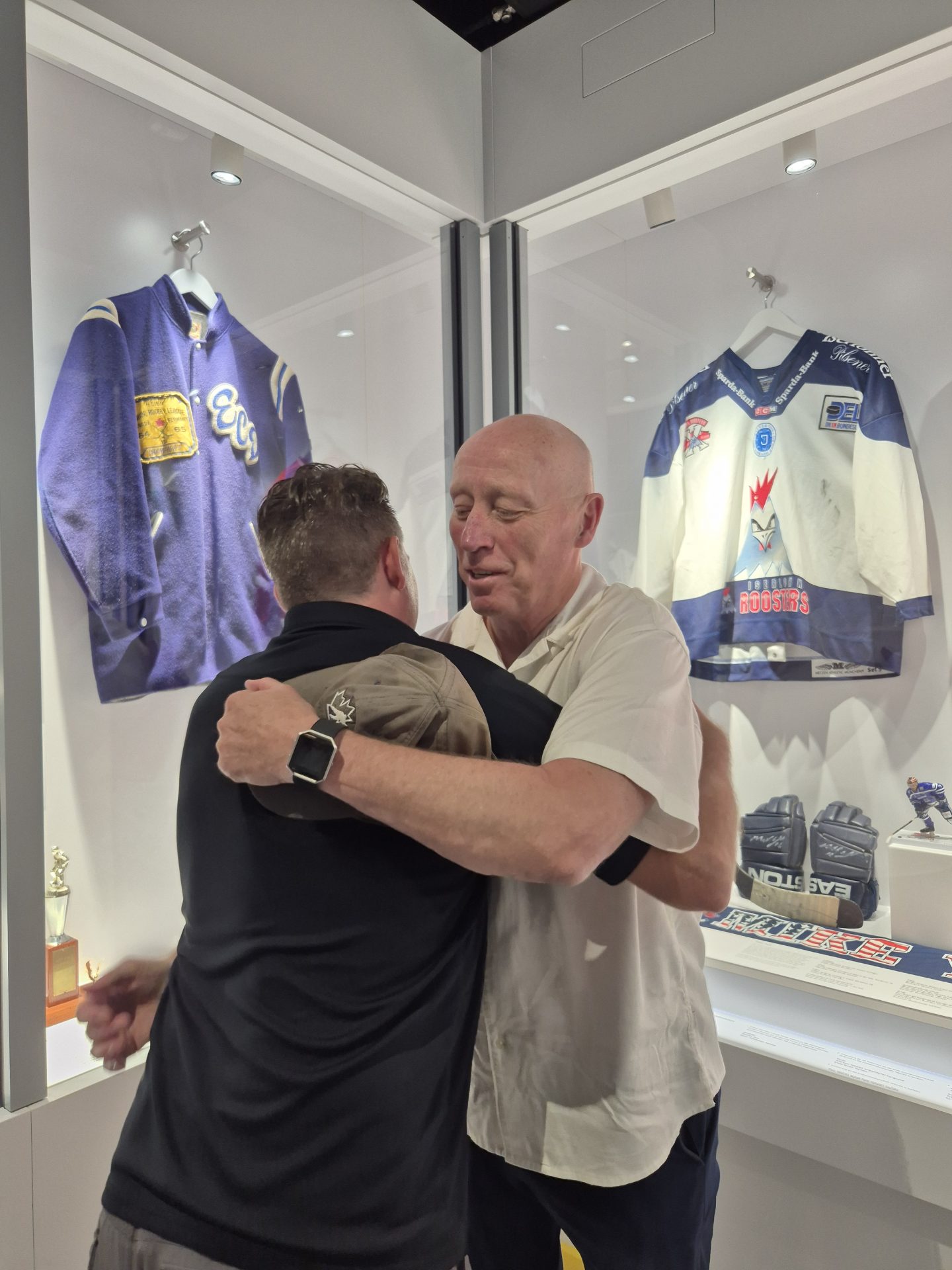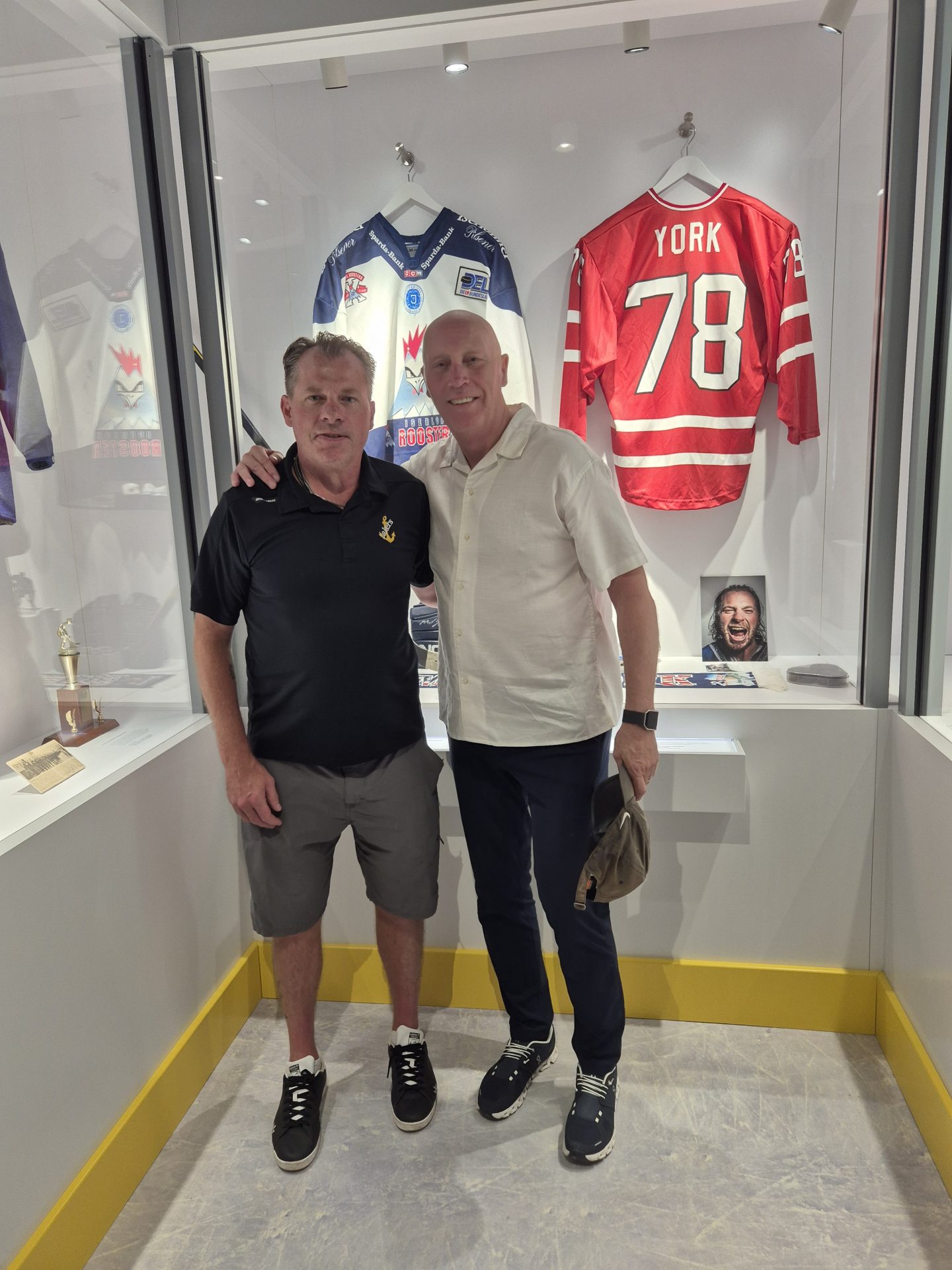 Nach acht Jahren trafen sich Mike York und Doug Mason, Yorks Trainer 2004 bei den Roosters, im Eishockey-Museum wieder. Mason hatte York 2017 in den Staaten besucht.